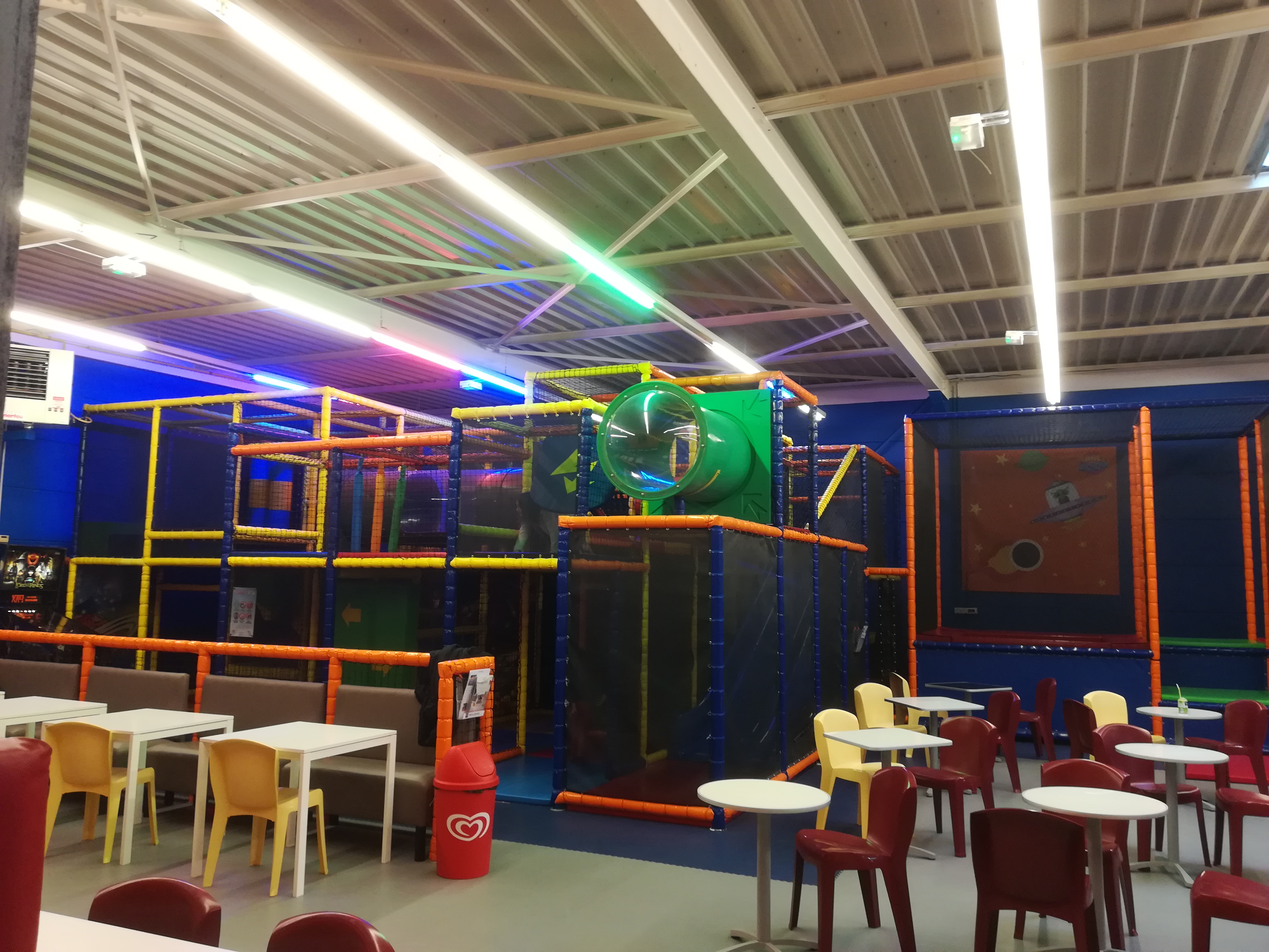 Très bon endroit pour les enfants ils peuvent si amuser comme jamais il y a un bar mais il n'y a pas d'alcool on peut y manger également pas de menu restaurant bref plein de jeux pour enfant et bien sécurisé